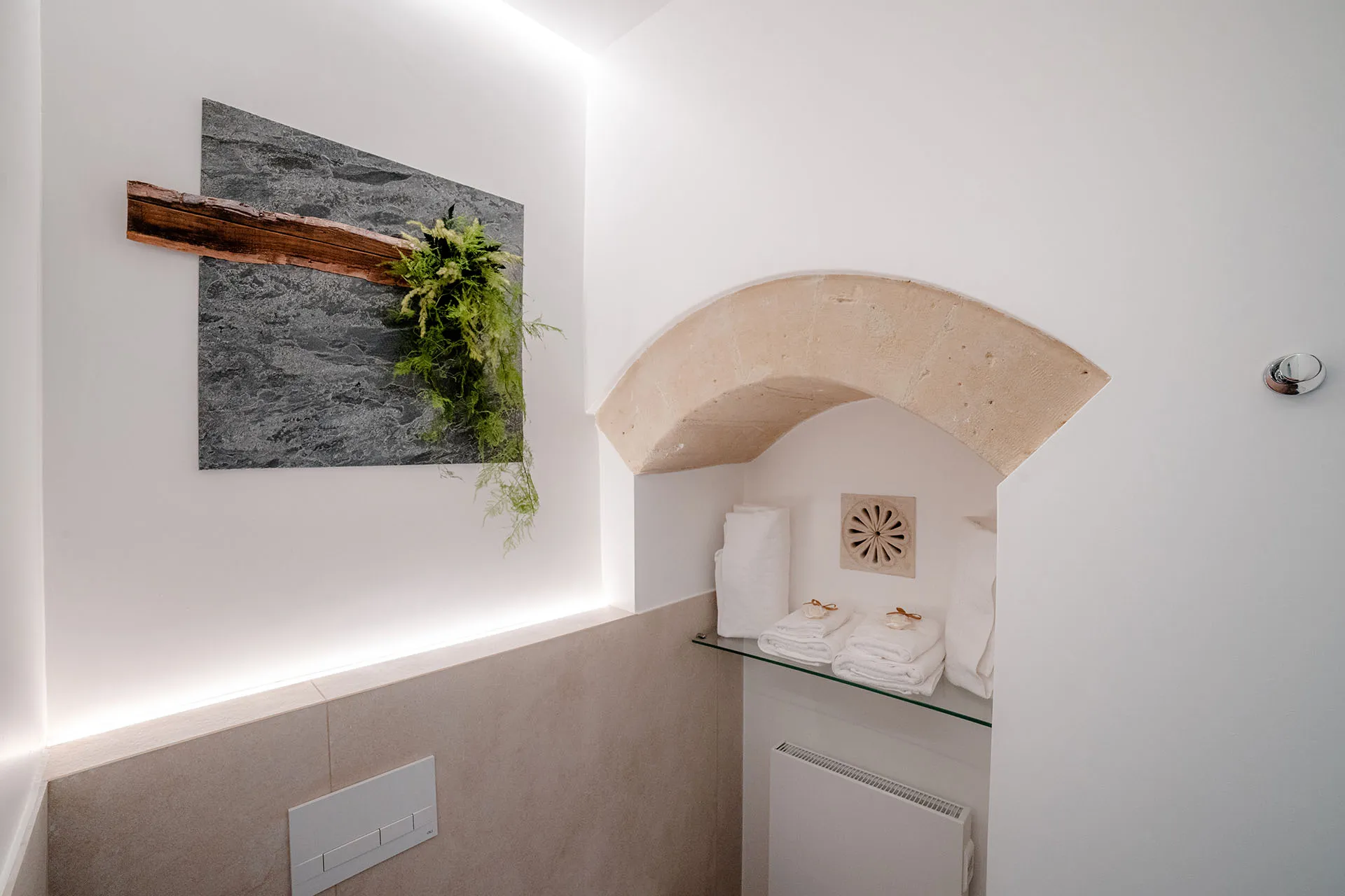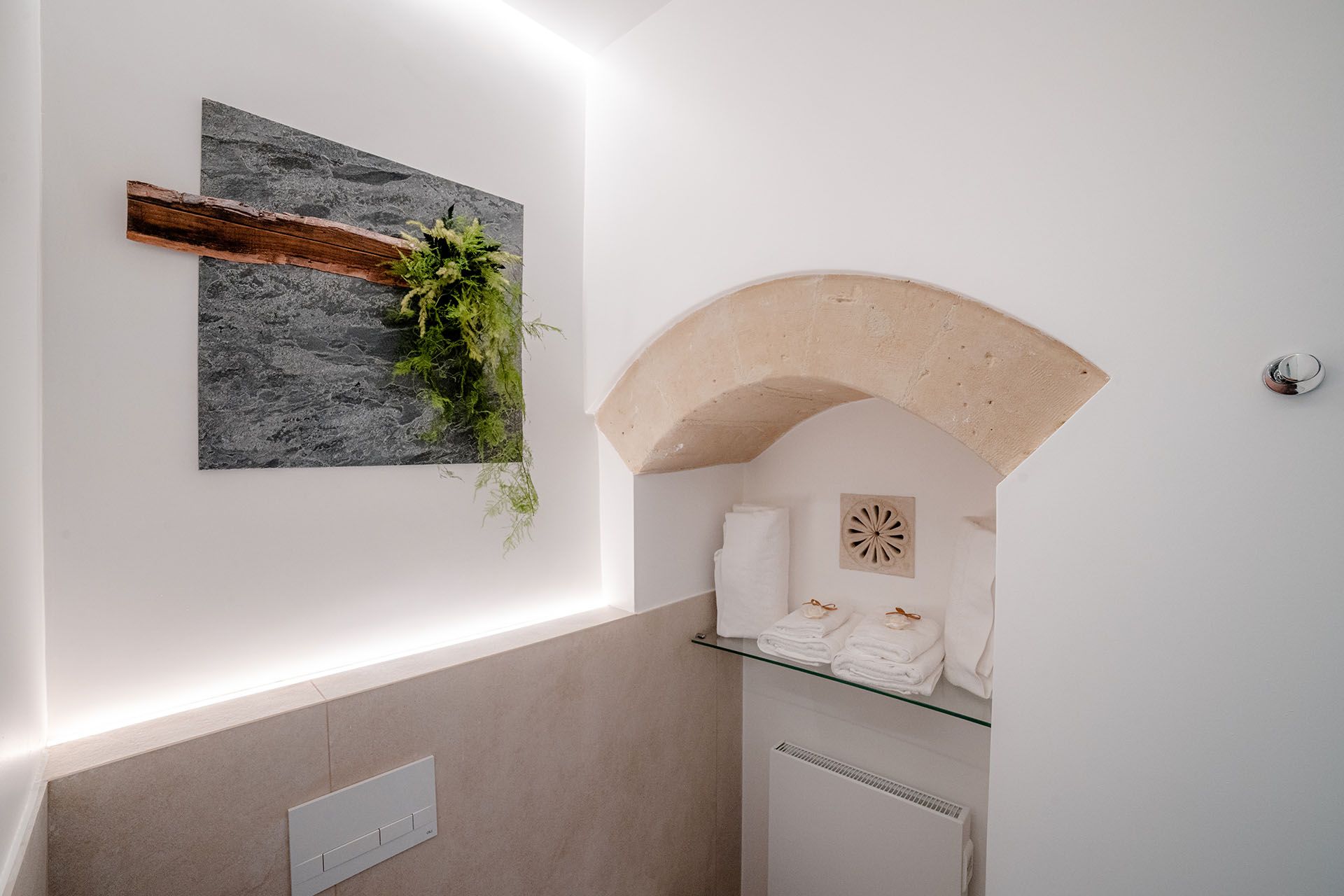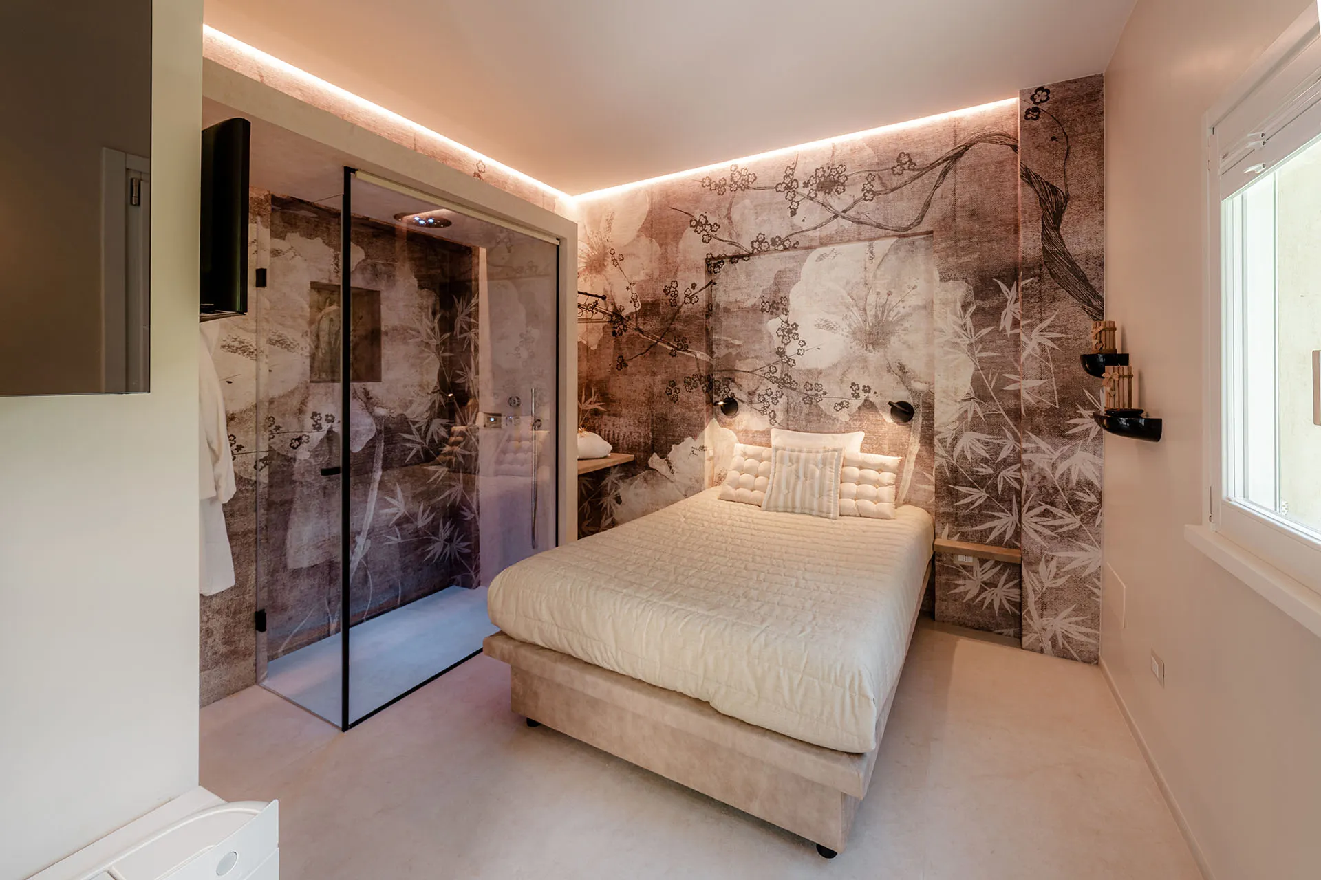 Little Lara is a lovely and romantic room. It has been designed as an extension of the facility's access garden, , with its colourful flowers and centuries-old trees. Its walls are trees and flowers, its lights are the reflections of the sunset on the Sassi.