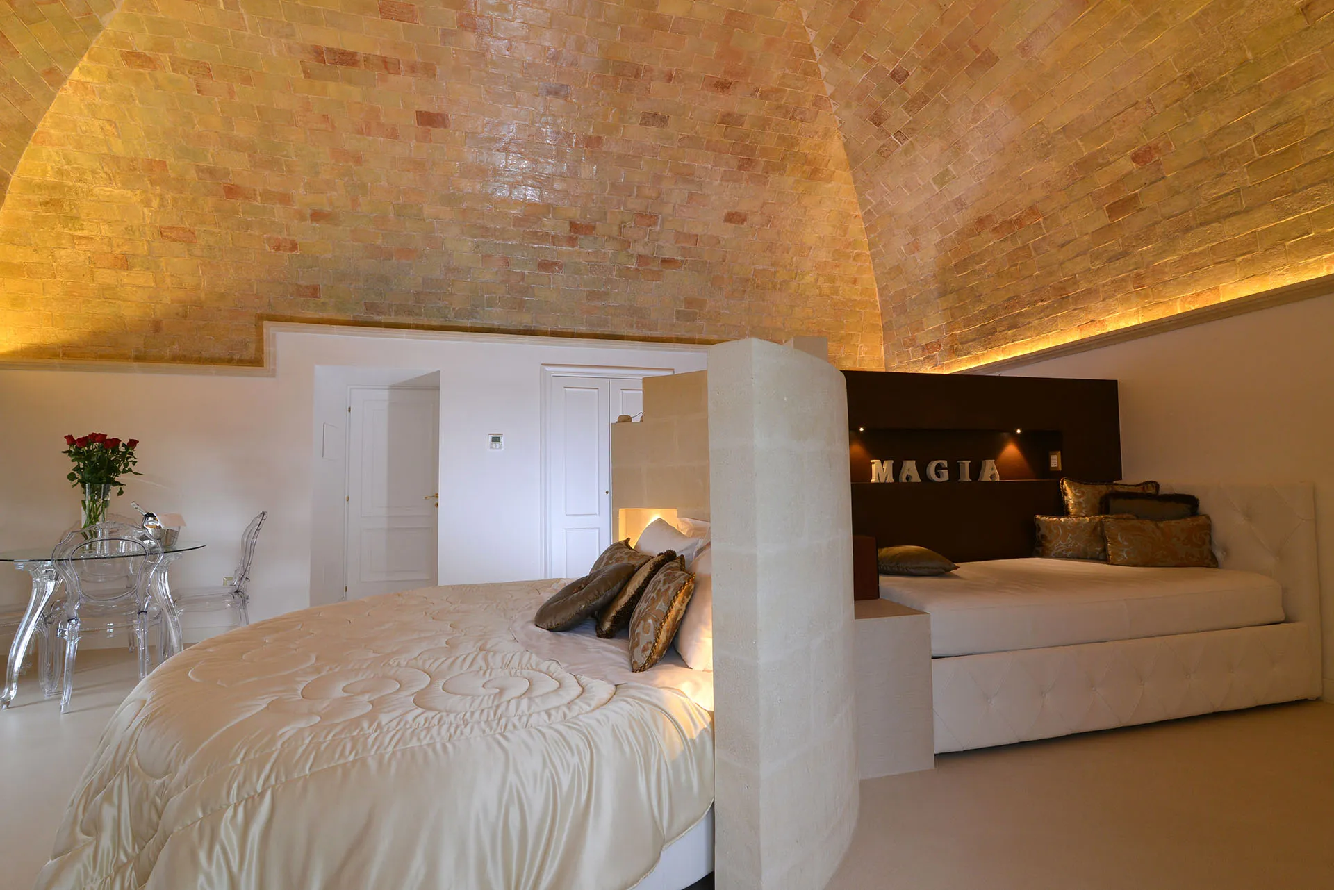 Questa suite ha una superficie di 45 mq e vanta una magnifica volta a mattoncini. La volta, il letto e la vasca idromassaggio costuituiscono gli elementi centrali della sua originalità, oltre naturalmente alla sua posizione straordinaria.
