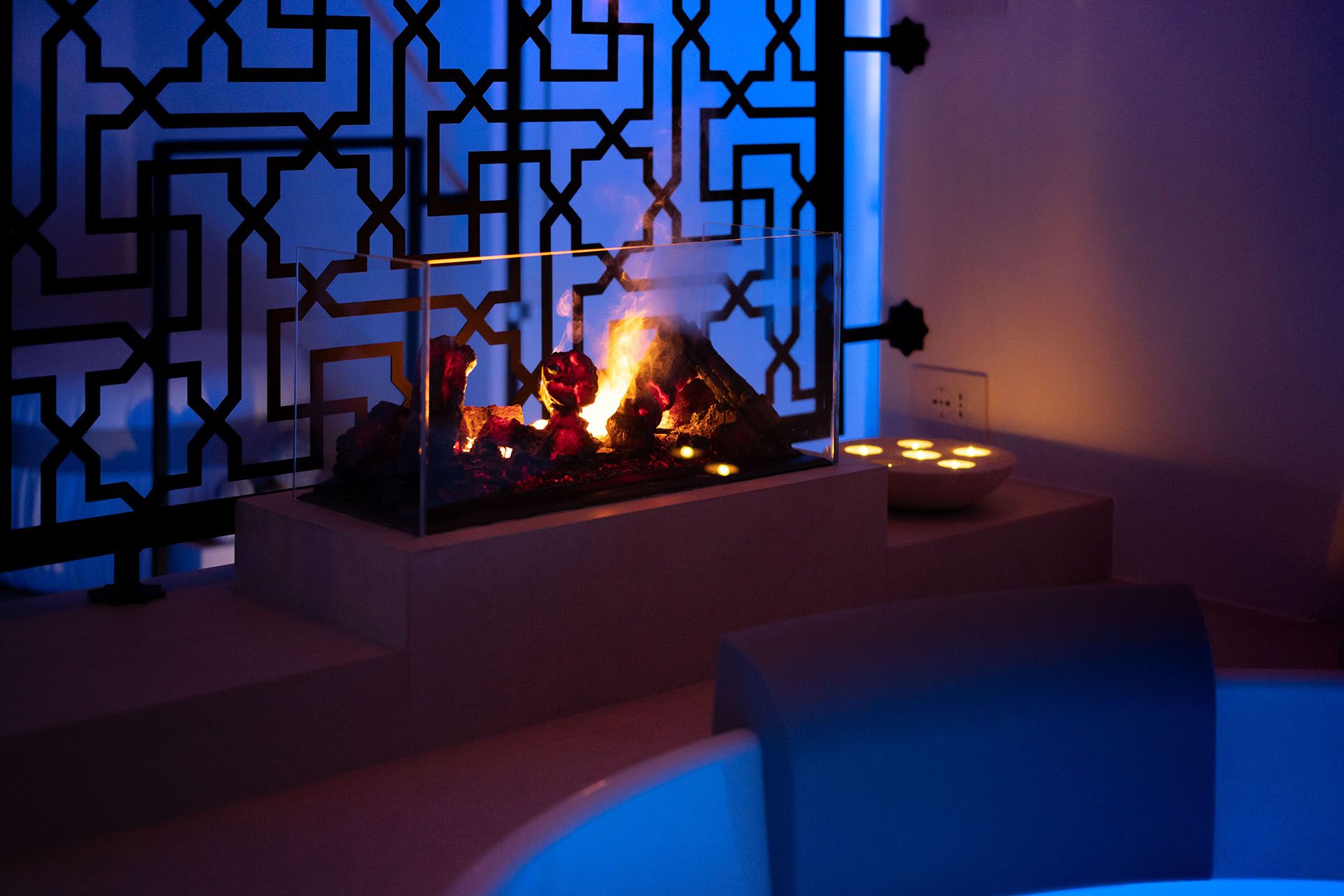 Camino elettrico fronte vasca con telecomando